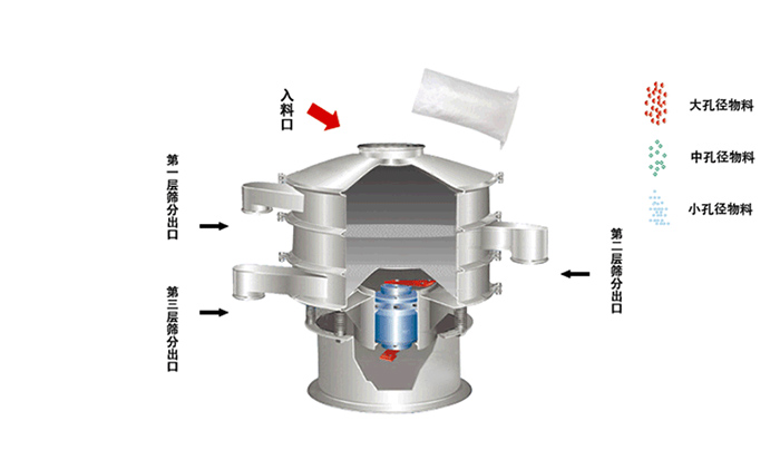 3. 篩分過程:在振動的作用下,物料會不斷跳躍、滾動和移動,同時通過篩網(wǎng)的篩孔,較大顆粒的物料會被擋在篩網(wǎng)上方,而較小顆粒的物料則通過篩孔落入下方的出料口。