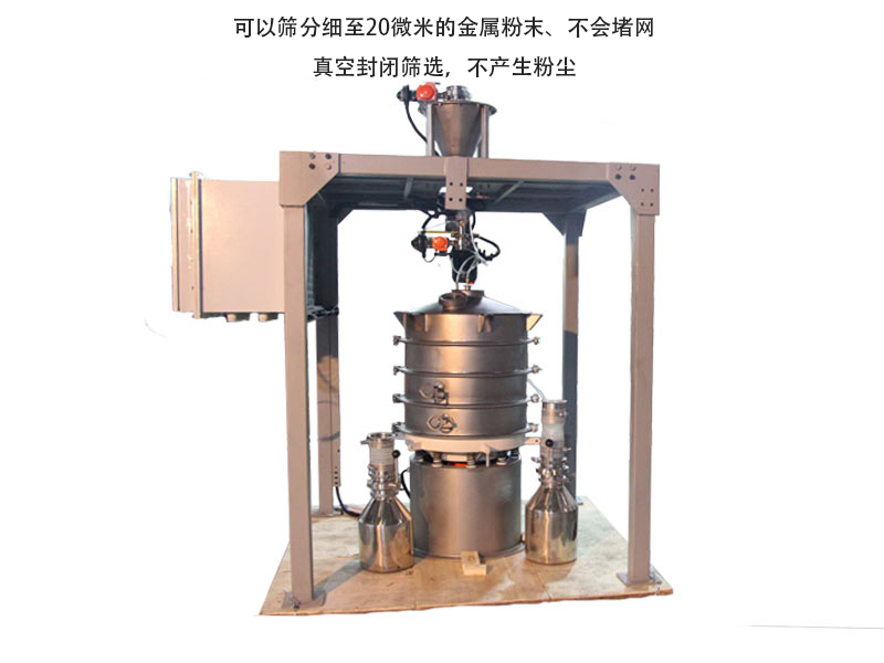 特點(diǎn):與超聲波系統(tǒng)相結(jié)合,可以篩分20微米的金屬粉末,不堵網(wǎng),真空封閉篩選,不產(chǎn)生粉塵