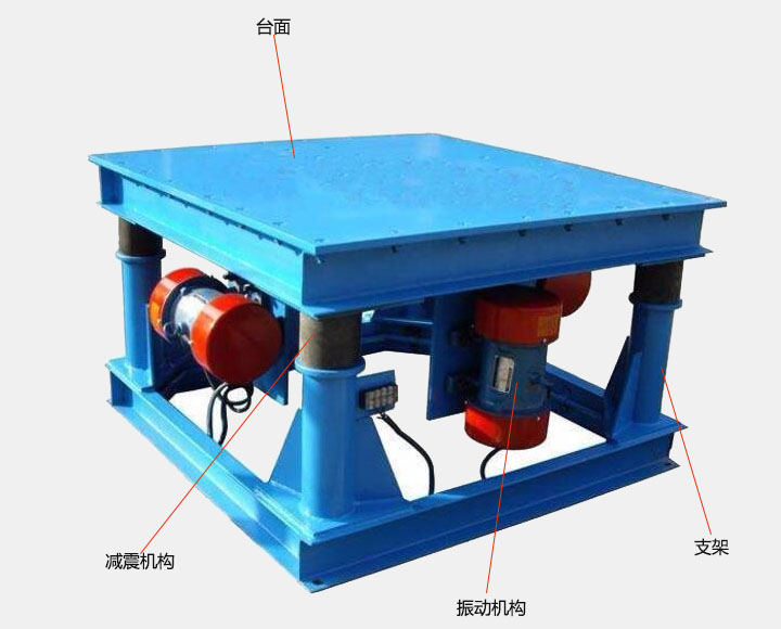 1、 高頻振動平臺主要有支架、臺面、振動機構,減震機構四部分組成。在振動機構的帶動下做橫向、縱向、上下等三維振動,故而得名。